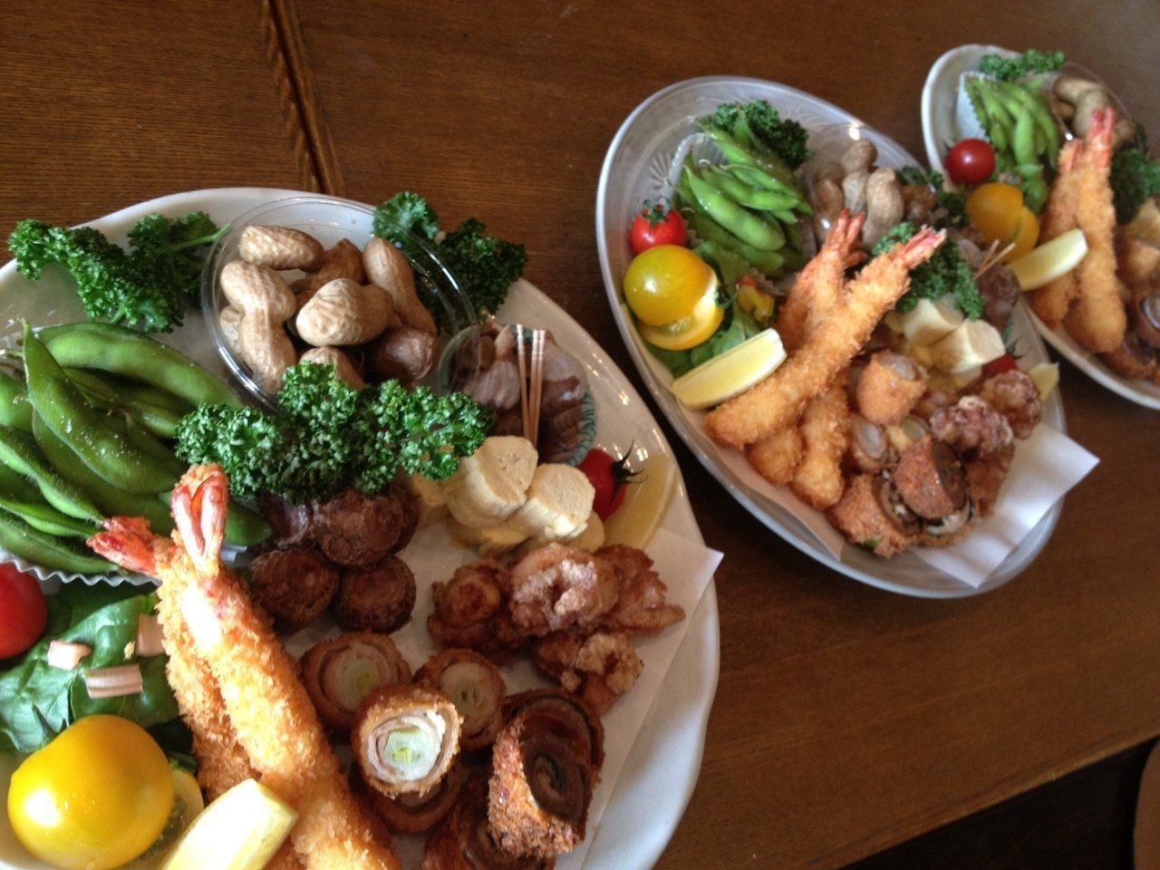 ちなみに、上の画像の内容は、《黒大豆の枝豆・石川小芋・塩茹で生落花生・出し巻玉子・ツブ貝旨煮・海老フライ・秋刀魚梅紫蘇フライ・豚の葱巻フライ・日南鶏ももから揚げ等》です。