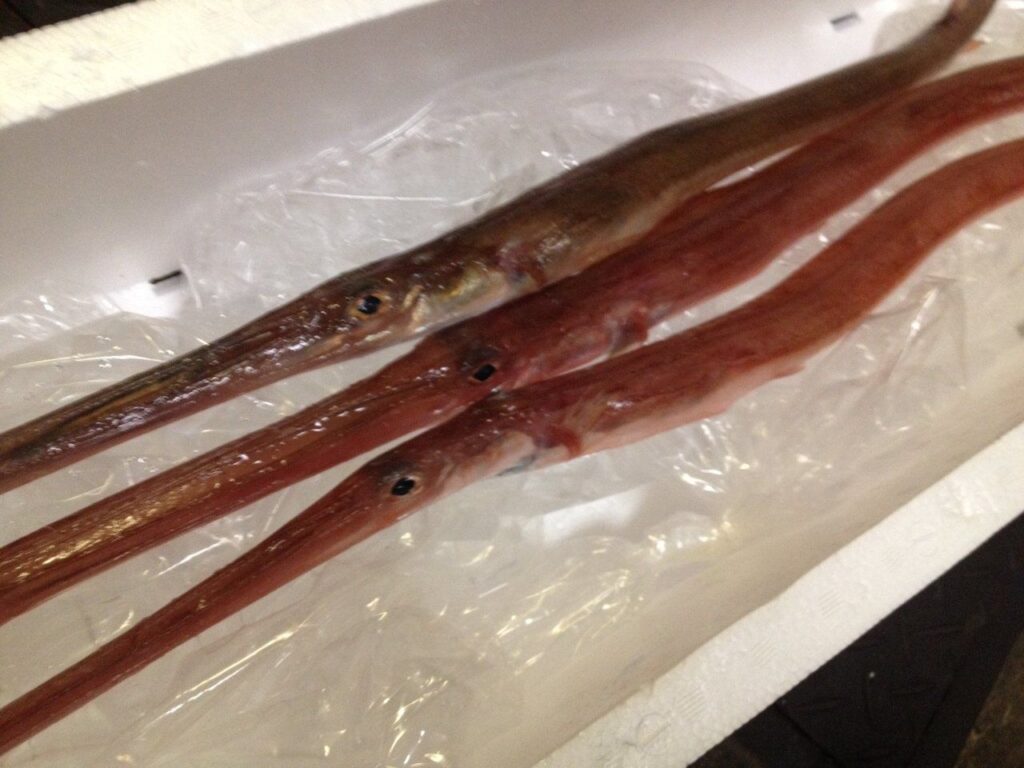 正面からのショットです。口が細長ーく特徴あります。なんだか泳ぎにくそう・・っていらん心配してしまいます。