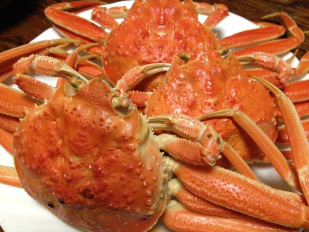 雄のズワイガニに比べて、雌のコウバコガニは非常に小さな蟹です。(上の画像では大きさが分かりにくいですが、甲羅が5,6センチ足らずです。)