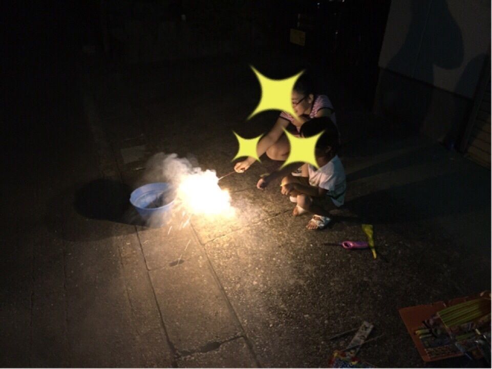 夕ご飯を食べてから、子供たちと花火を楽しみました。