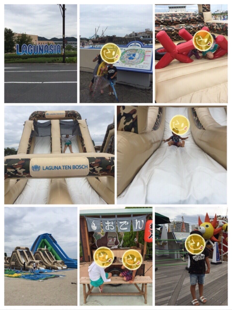 プール内はカメラを持って行かなかったため画像はありませんが、砂浜の方に新しく出来たアトラクション《ビーチパーク》(ラグナシアのCMでもやっている日本最大級の100mのスプラッシュスライダー等々)に、子供たちはとっても楽しんでました。