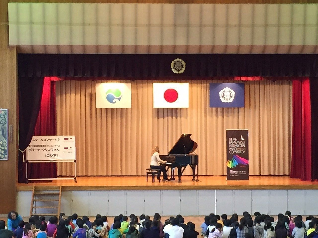 そのうちの一人、ロシアのポリーナ・クリコワさんが、先日、娘の通っている小学校に演奏に来てくれていました。