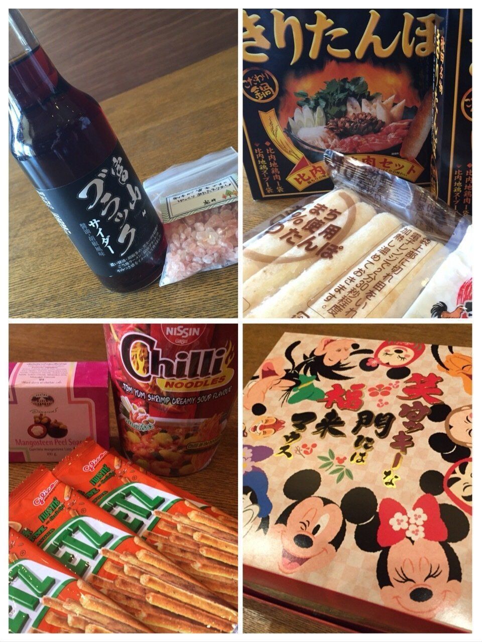 左下が、別のNさんからタイ旅行のお土産で石鹸、トムヤンクン味のヌードルとプリッツ。