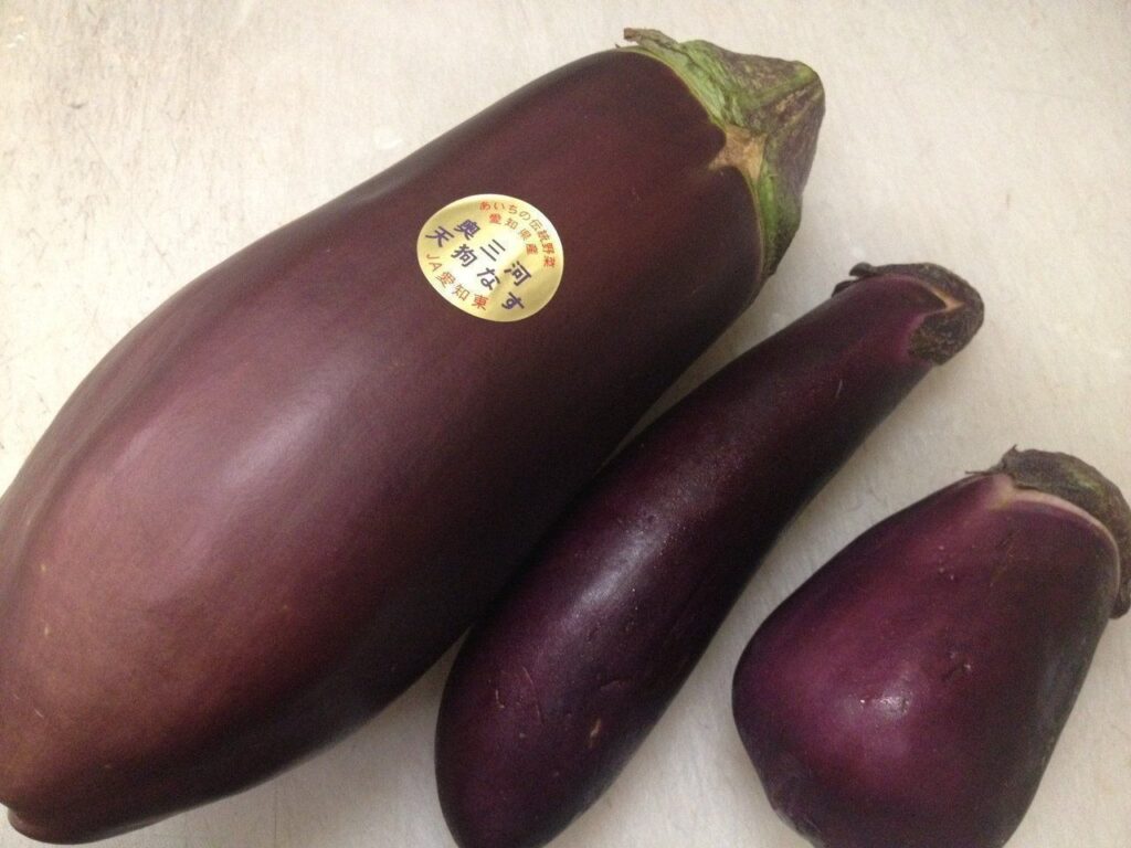 左から天狗茄子・長なす・水茄子です。 天狗茄子がいかに大きいかが、お分かり頂けるのではないかと思います。 愛知県奥三河の伝統野菜で、天狗伝説のある奥三河津具地域を中心の栽培されているそうです。形も天狗の鼻状というユニークな形状です。 大きさ... -