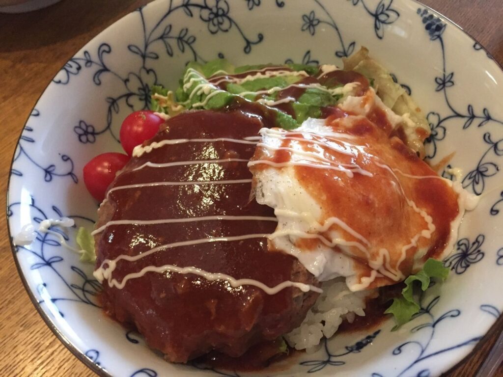 先日の賄い『ロコモコ丼』です。 ごはんの上に、ハンバーグに目玉焼き、アボカドにトマト、レタス等々。上からタレをかけて完成。 春休みに入った子供達と一緒にお昼の賄いでした。 -